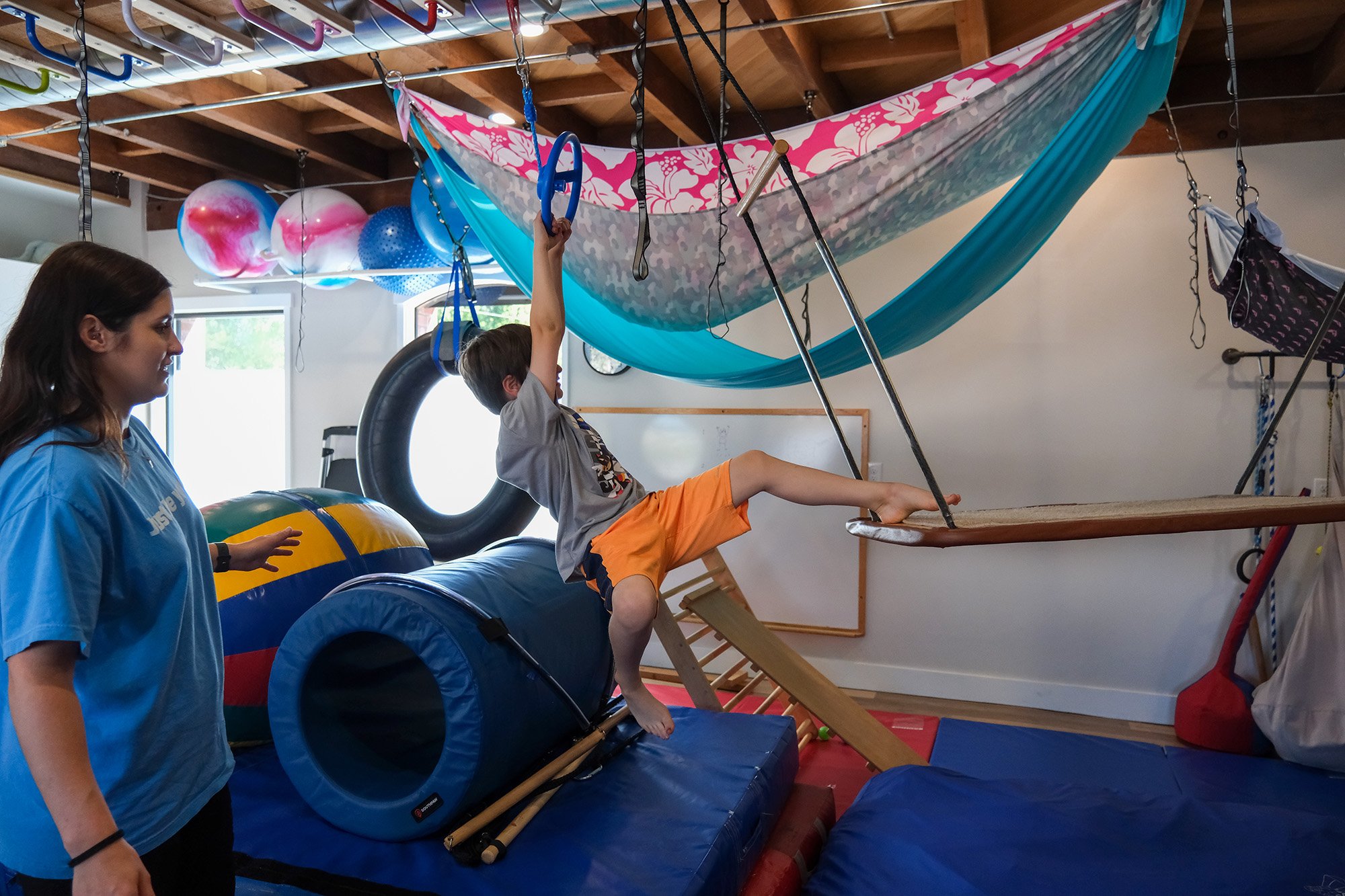 We work with kids ages 18 months–15 years who face challenges with sensory processing, motor skills, coordination, balance, or regulation that affect daily life.